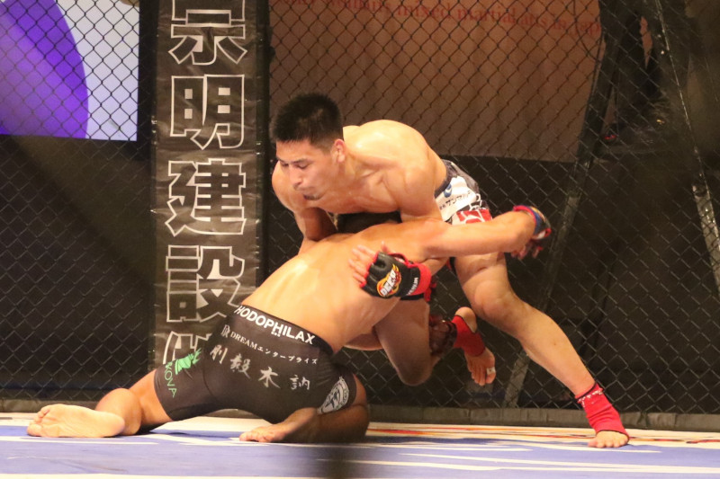 平田がタックルを仕掛けるも神田は徹底したテイクダウンディフェンスを見せる