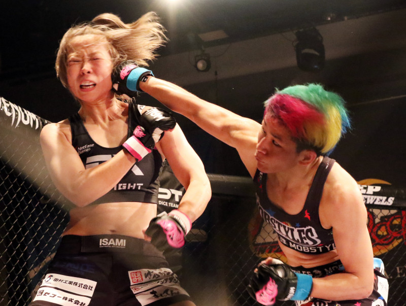 HIMEのパンチが藤田を襲う