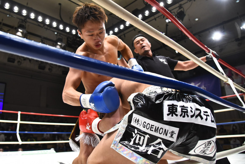 右ボディで鷹大(右)をKOした國枝(左)
