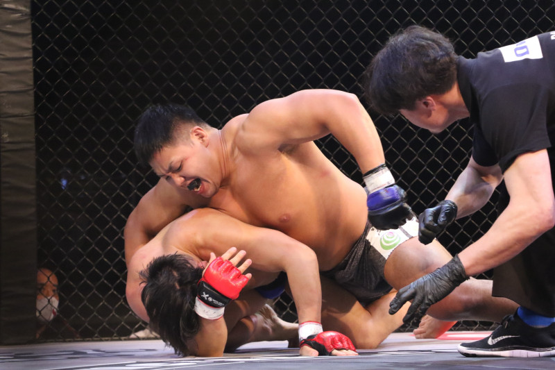 100kg超級の渕上幹斗が佐藤光留をパワーで圧倒、デビュー戦をTKO勝利で飾る