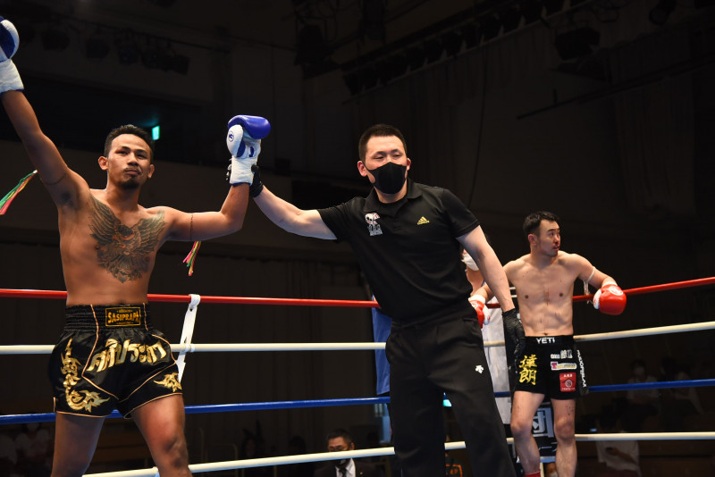 元WBC日本王者YETIをヒジで秒殺したチャンスック(左)
