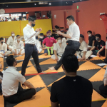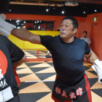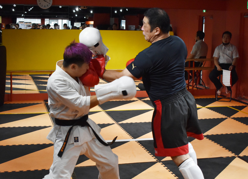51歳 山本が良星にパンチを打ち込む