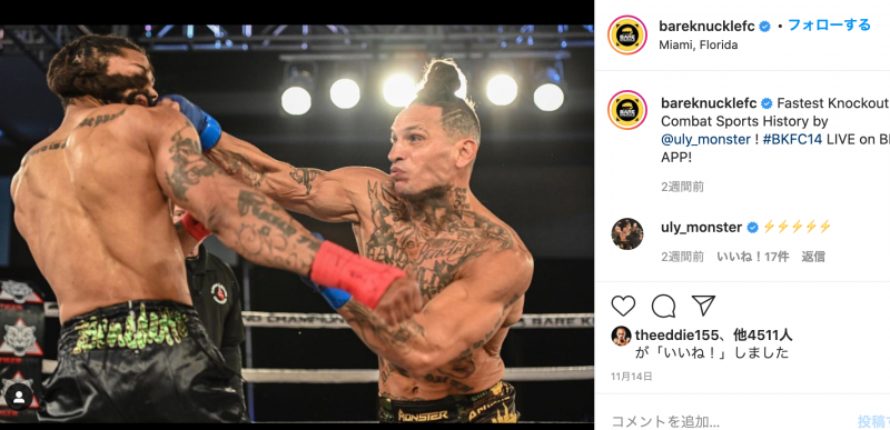 団体史上最速の3秒KO劇(BKFC公式インスタグラムより)