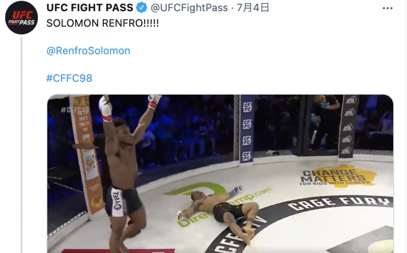 UFC参戦を狙う新鋭が“69秒殺”KO!豪腕パンチで相手は大の字ダウン@UFC FIGHT PASS Twitterより