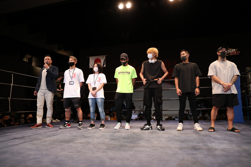 休憩前にはRISE伊藤代表(左)らがマイクパフォーマンスを行った