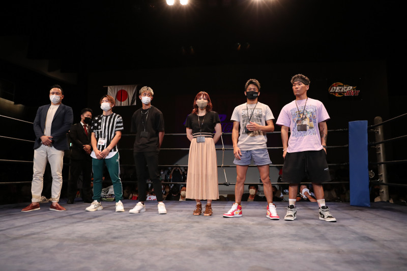 大会途中にはRISE伊藤代表(左)らがマイクパフォーマンスを行った