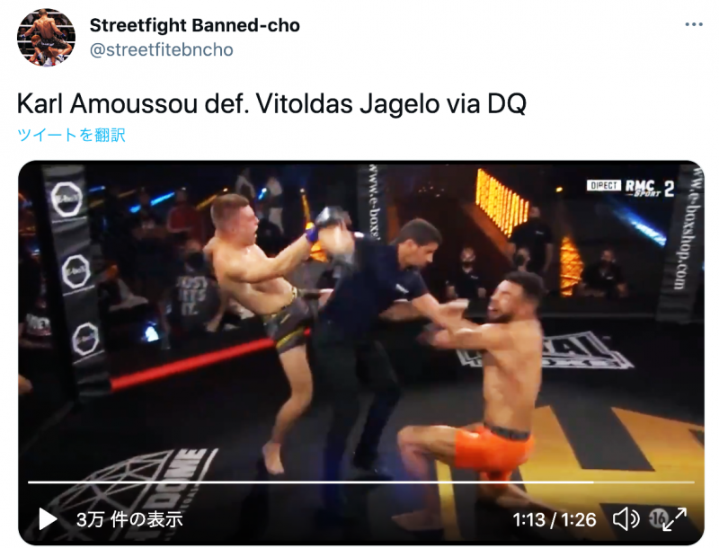 1R終了ブザーが鳴った後、激怒のヤネロが悪質反則の顔面蹴り!@streetfight Banned-choより