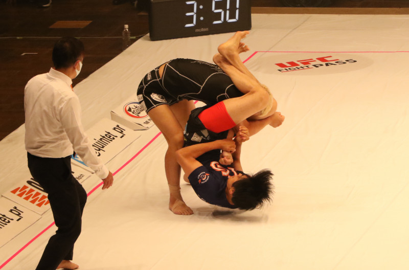 桜庭の息子SAKU Jr.に圧倒的差を見せつけられるガリットチュウ福島(左)