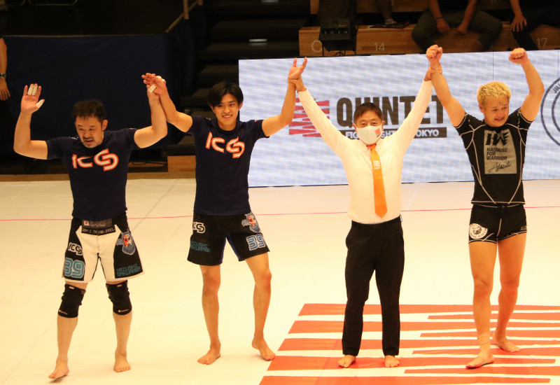 桜庭親子とエキシビションマッチを行ったクインテット初挑戦のガリットチュウ福島(右)