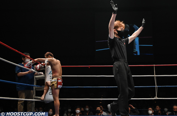 大和の鼻が折れ、レフェリーが試合をストップ