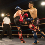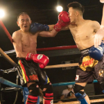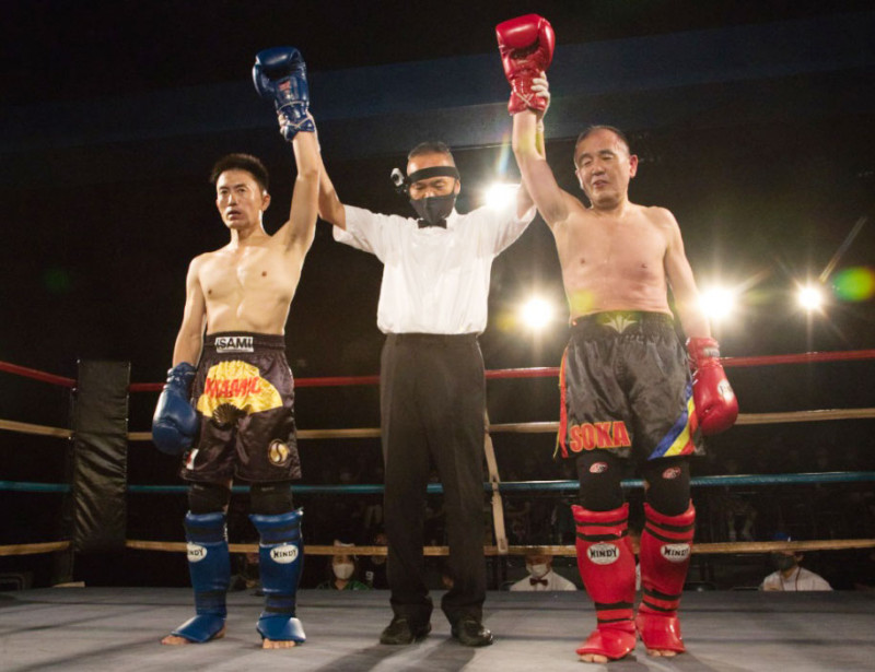 元キック王者で62歳の飛鳥(右)と41歳の難波(左)が対戦、判定は1-0の引き分けとなった
