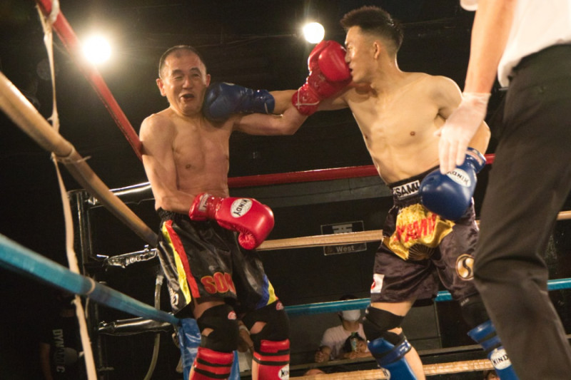 2R、難波(右)の右ストレートが飛鳥(左)のアゴにヒット