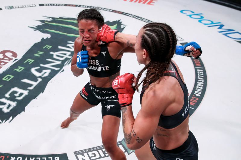 リーチ差を活かした王者のジャブがヒットする©️Bellator