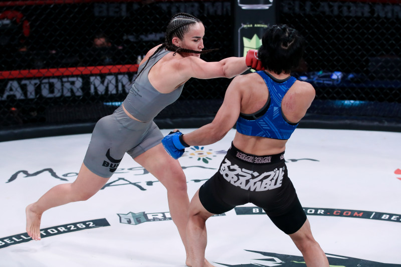 踏み込んだ右を放つアヴサラゴワ©️Bellator