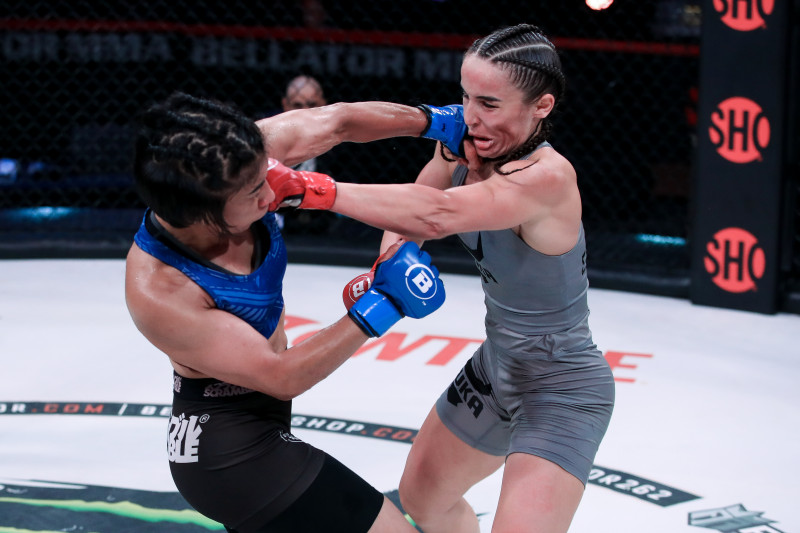 相手のパンチを被弾する場面も©️Bellator