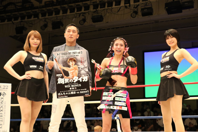 過去最強の難敵を下したぱんちゃんは試合後のマイクで「怖かった!」と本音で絶叫