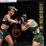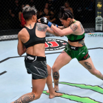 前進するルイスに、打撃で近づけさせないレモス(©Getty Images/UFC)