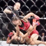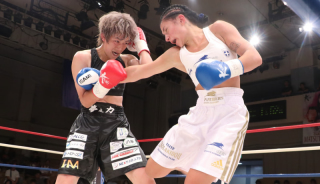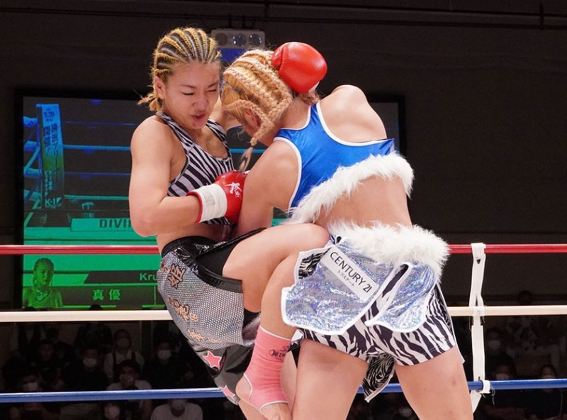 ヒザ蹴りを放つ真優