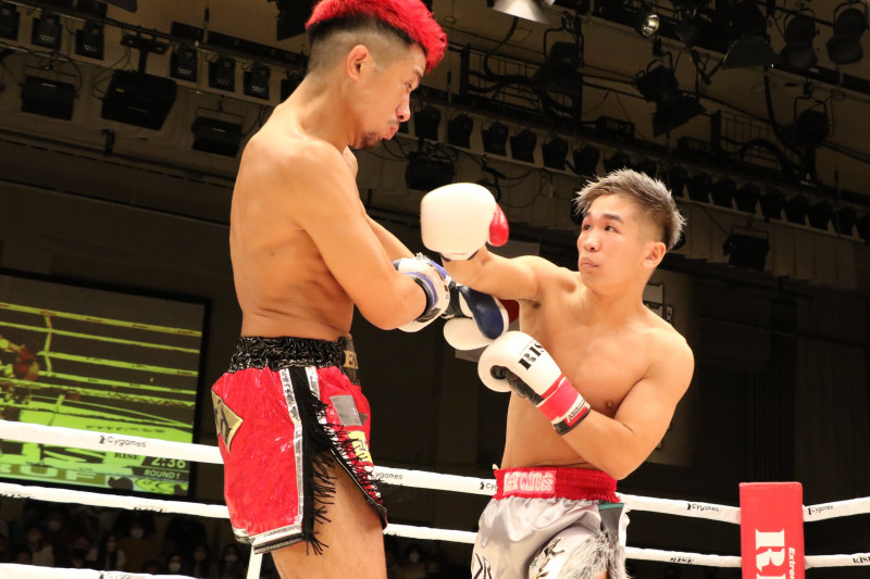 良星は上下に打ち分けるコンビネーションで知花を攻める