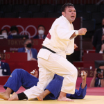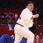 最後の大将戦で技ありで勝利し日本チームの準決勝進出を決めたウルフ・アロン(写真は29日の金メダルを獲得した瞬間)(C)Getty