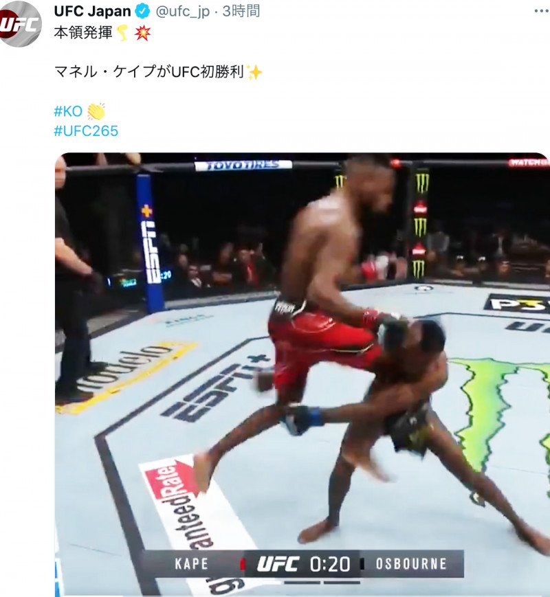 元RIZIN王者ケイプが飛びヒザ蹴りKOでUFC初勝利!@ufc_jpより