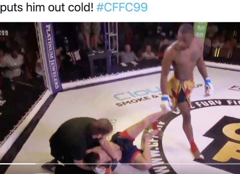 1発の顔面ヒジ攻撃で相手は失神!ジョン・ジョーンズの同門新人が秒殺KOデビュー!@UFC FIGHT PASS Twitterより