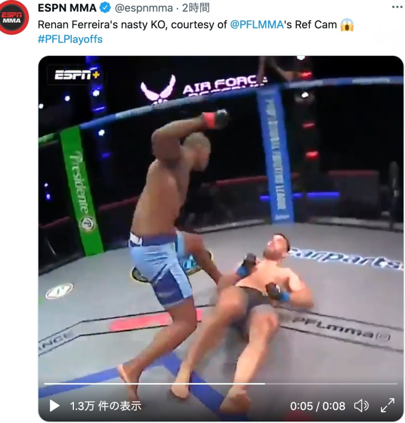 ヒーナン・フェレイラが右ストレート1発の秒殺KO!@espnmmaより