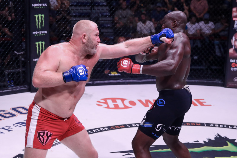 左ジャブを突き刺すハリトーノフ(左)©️Bellator