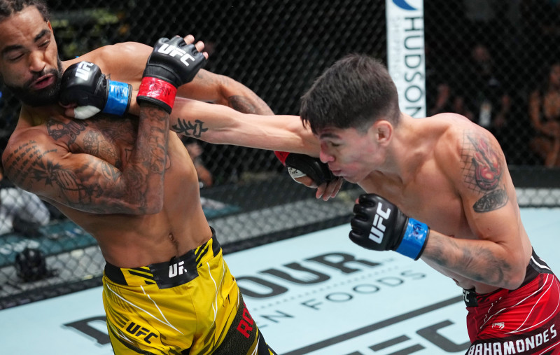 バハモンデスが強烈パンチでリードし最後に豪快なバックしピンキックでKO勝利した(C)Getty/UFC