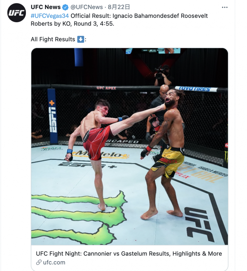 バックスピンキック、相手の顔が歪む(@UFCNewsより)