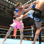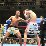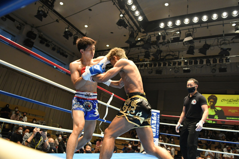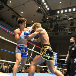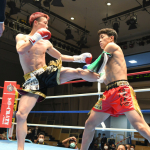ヒジ打ちを当てる大翔