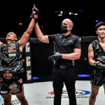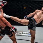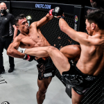 タワンチャイ(右)の右ハイを、寸前でスウェーでかわすシッティチャイ(左)©️ONE