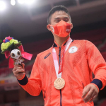メダル授与式を終え、笑顔を見せる瀬戸勇次郎=日本武道館(撮影・伊藤笙子)