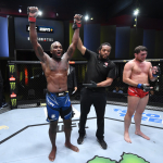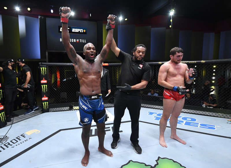 試合後、王者アデサニヤに挑戦状を叩きつけたブランソン(©Getty Images/UFC)