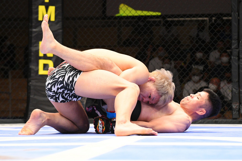 元ストロー級王者の越智晴雄(右)がフライ級初戦で勝利(C)DEEP
