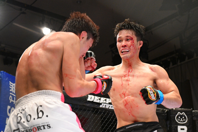 関が流血しながらもDJと激しく打ち合う(C)DEEP