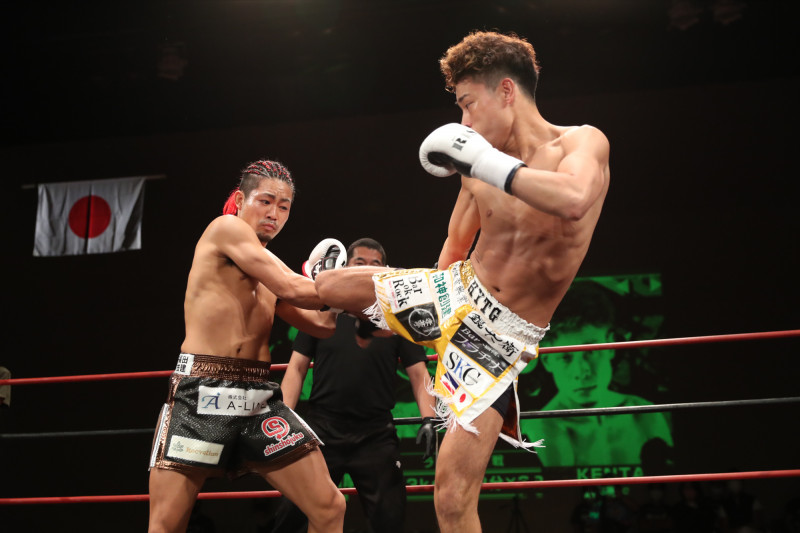 蹴りを放つKENTA