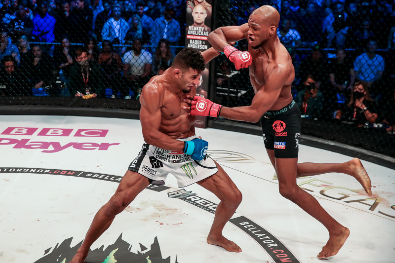 激しく打ち合う両者@Lucas Noonan / BELLATOR MMA