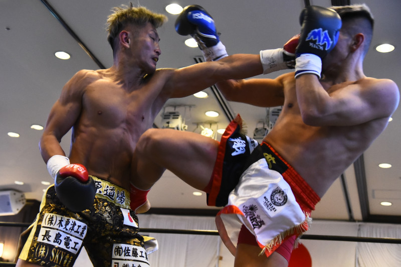 打ち合いを見せた松山(左)と中泉(右)