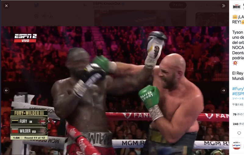 フューリーのKOした右(ESPN KNOCKOUT TWITTERより)