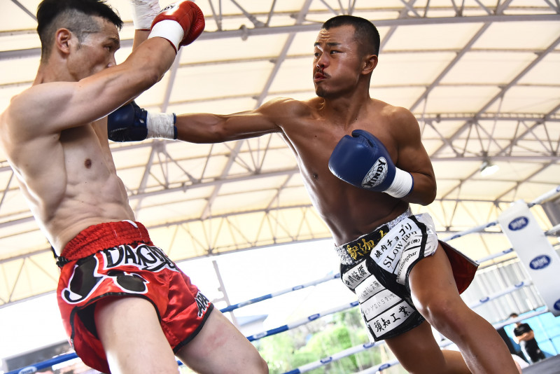清水(左)からダウンを奪って判定勝ちした加藤(右)