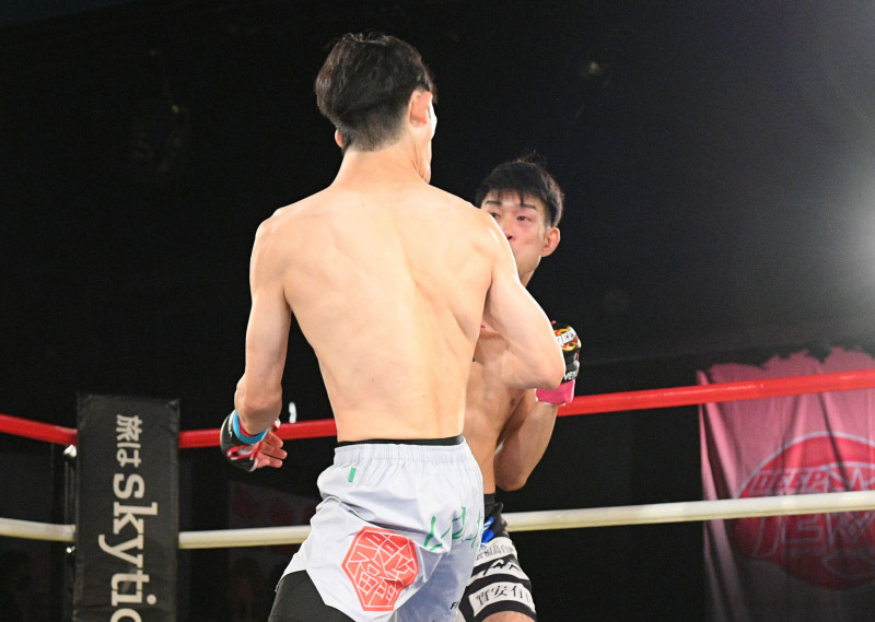 平松(右)のパンチがクリーンヒットする瞬間(C)DEEP