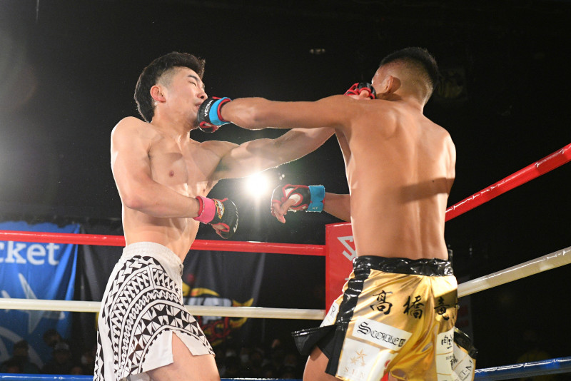 宮島(左)と山本のパンチが交錯する(C)DEEP