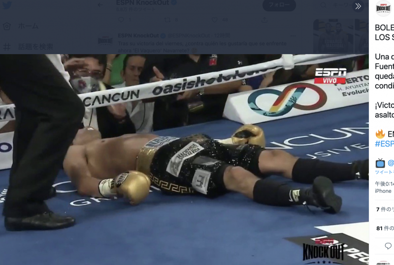 失神し意識不明となったフェンテス(ESPN KNOCKOUT ツイッターより)
