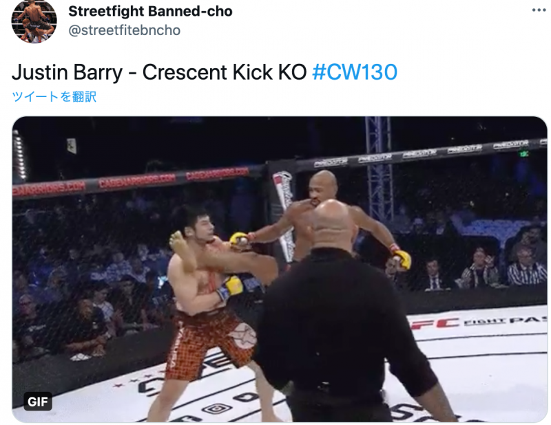 内回し蹴りがヒットした瞬間@streetfitebnchoより