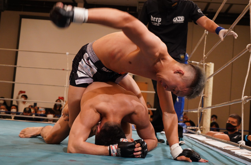 バックから鉄槌とパウンド攻撃で勝利した岡本秀義(C)DEEP