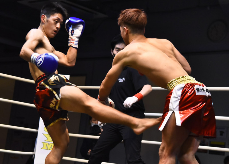 TKO勝ちした松井(左)