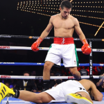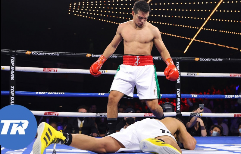 セペダがKOでシルバー王座を防衛、セペダは昨年の王座決定戦に続き、またも衝撃のKOシーンが生まれた(TOPRANK YouTubeサムネイルより)