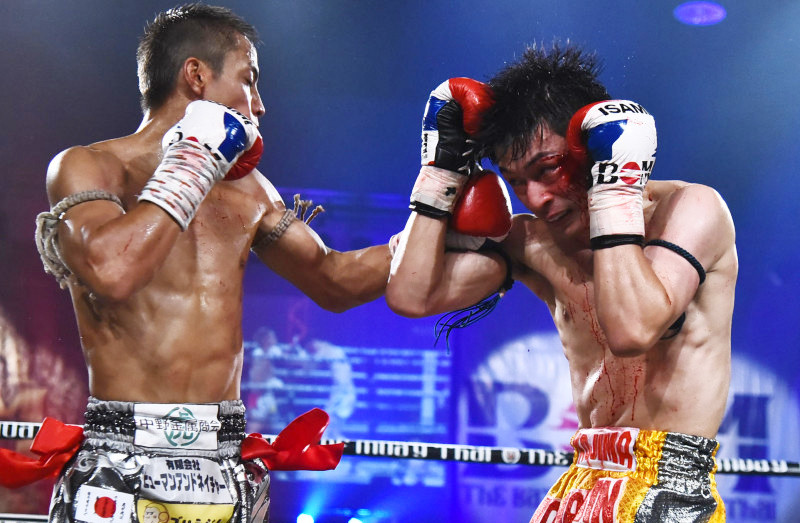 小嶋(右)をパンチ連打で追い込むイッセイ(左)