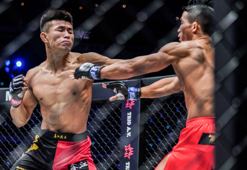 タン(左)の強烈な左フックを被弾するユン(右)©️ONE
